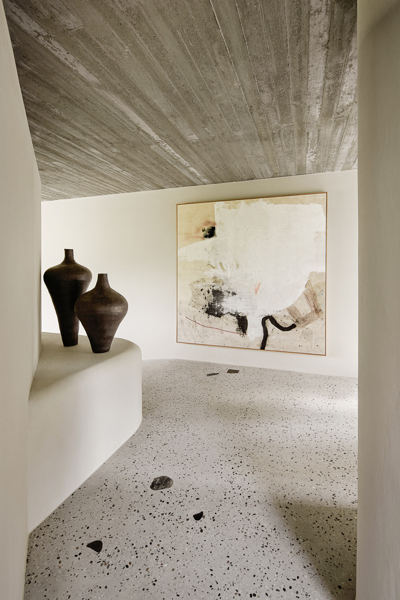 The architecture embraces relaxed, honest spaces, blending into the landscape and offering a variety of places for leisure, feasting, lush planting, fragrance, and swimming in a private setting.
