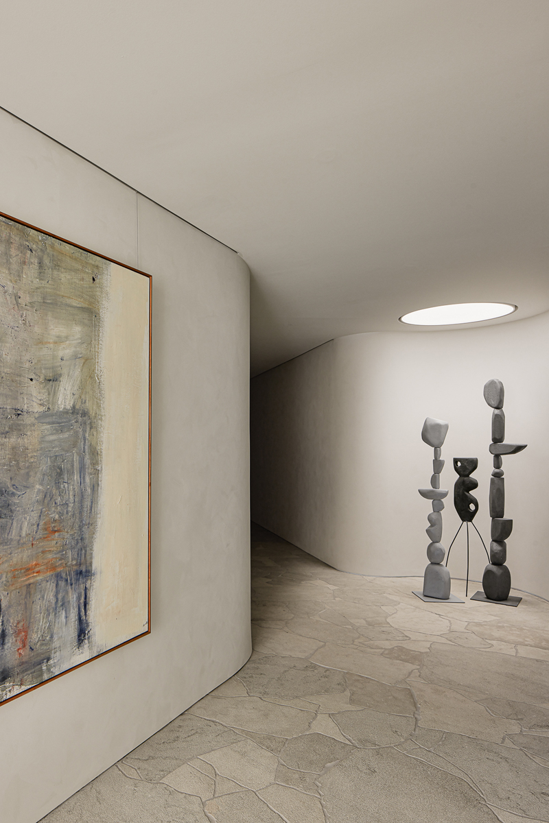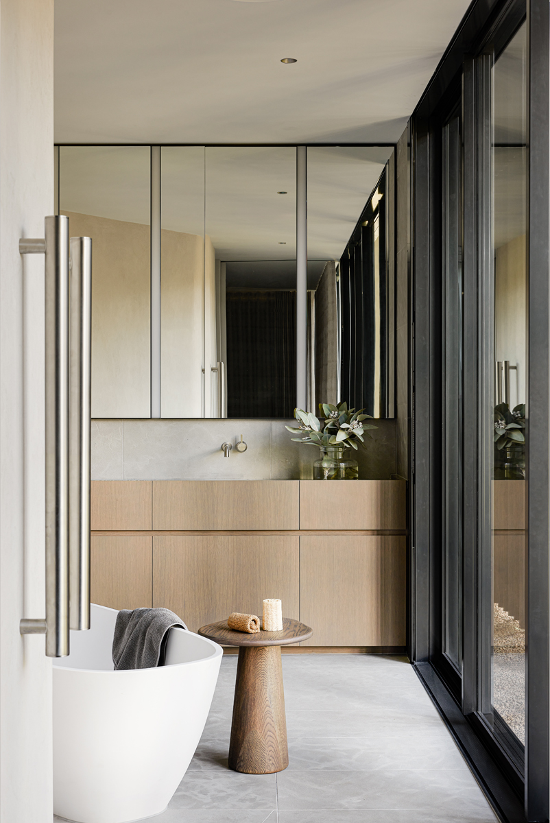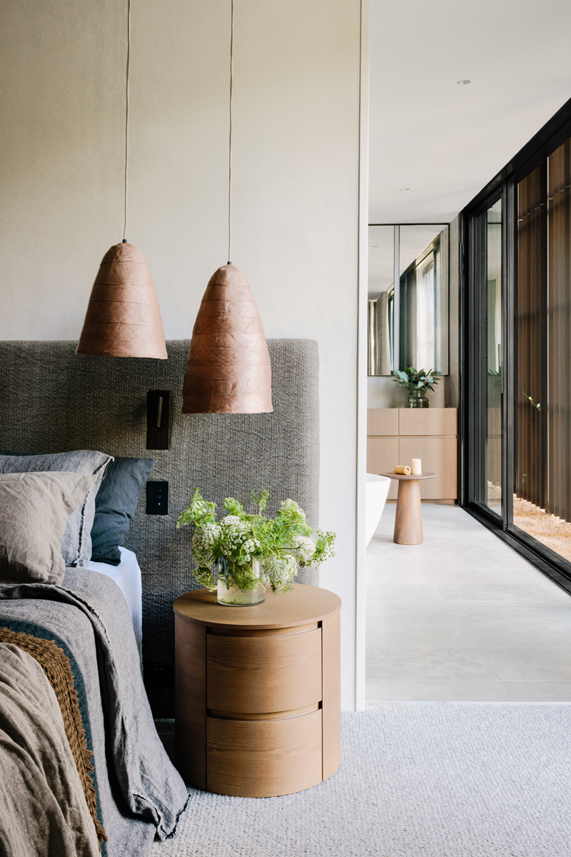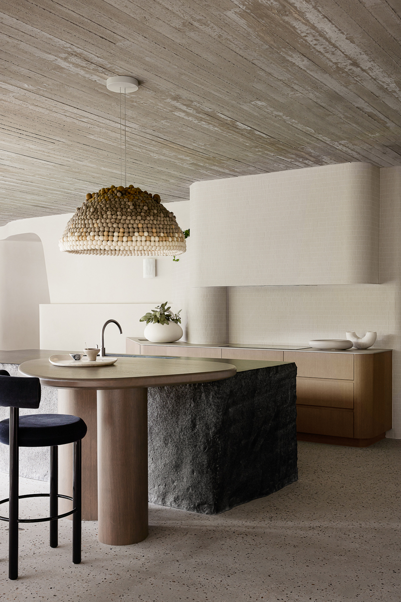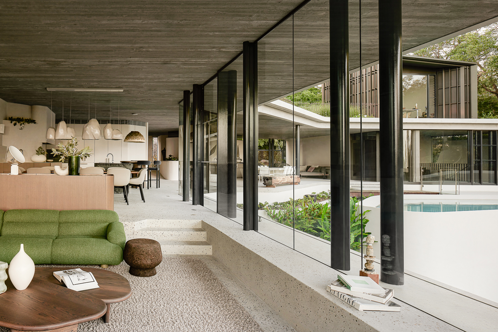Inspired by the clients’ childhood memories of local creek beds, this home fosters a strong relationship to landscape. The experience of the house mimics nature—hidden entries, shifting light, reflective water and organic materials. Curved walls and rocks form aseries of stepped levels to integrate with the steep terrain, while revegetation transforms the once-barren site. An L shape plan plan bends to capture northern light and key views. The architecture embraces relaxed, honest spaces, blending into the landscape and offering a variety of places for leisure, feasting, lush planting, fragrance, and swimming in a private setting. Completion 2023 Architecture Angus Munro, Sam Bresnehan, Miriam Kuzai, Malakai Smith Interior Louise Walsh Interior Design Structure NGS Structural Engineers Build MCD Constructions Lighting Graylight Landscape Dangar Barin Smith Town Planning Craven Town Planning Photography Brock Beazley