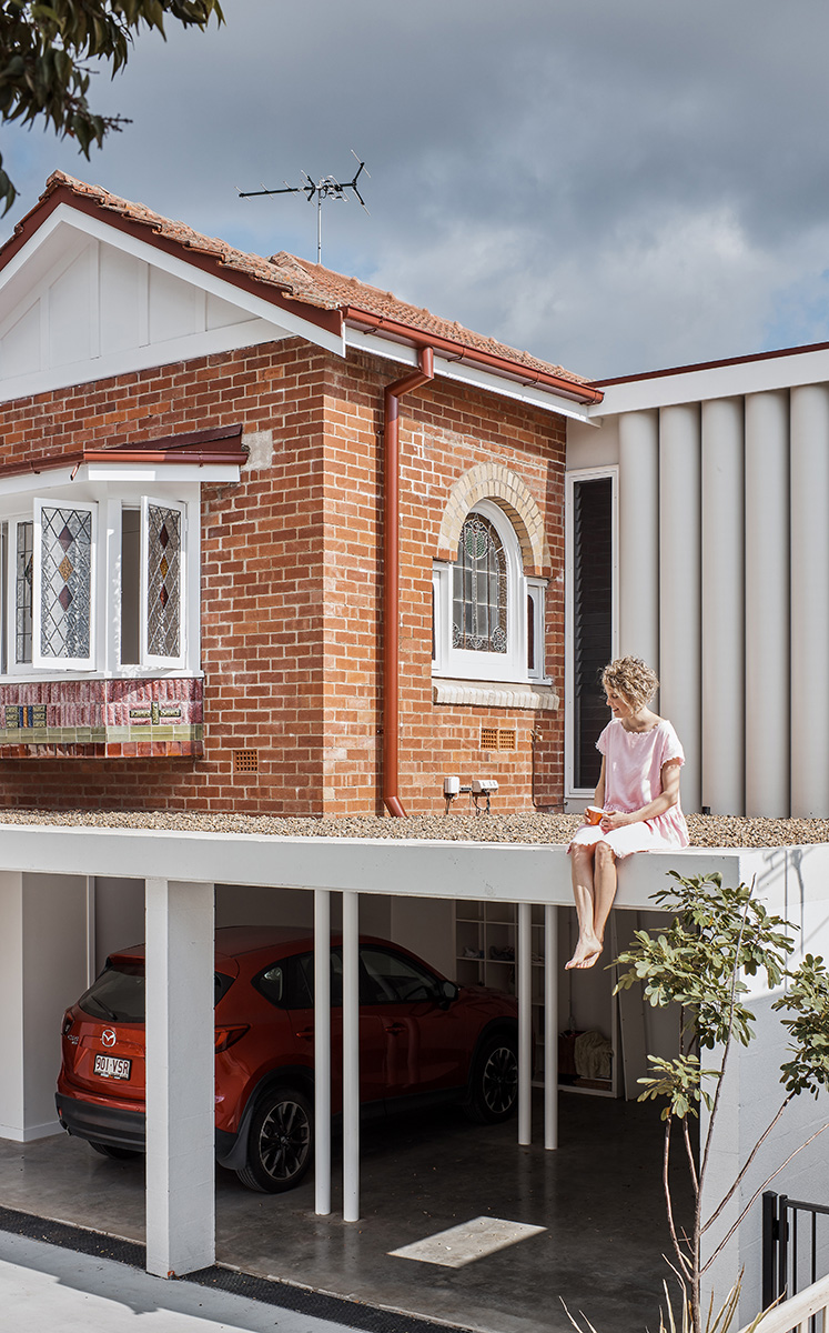 The project strategy was to amplify experiences qualities of the existing house. Additions are bold and responsive to the original house which is stoic and solid, with a series of brick arches. New cladding is inspired by the large round columns on the original portico. The geometry of the existing brick arches are extruded into intersecting vaults, which form the idea for the new living room ceilings.